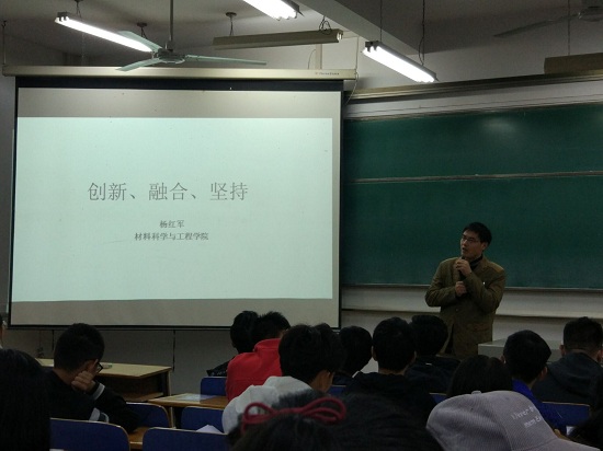 讲座过程中,杨红军老师讲述了自己的求学过程,研究方向,并向同学们简单描述了自己的研究内容,并且通过自己的经历向同学们讲述了一些学术研究中应有的思维和方法。他主要从三个方面进行阐述。