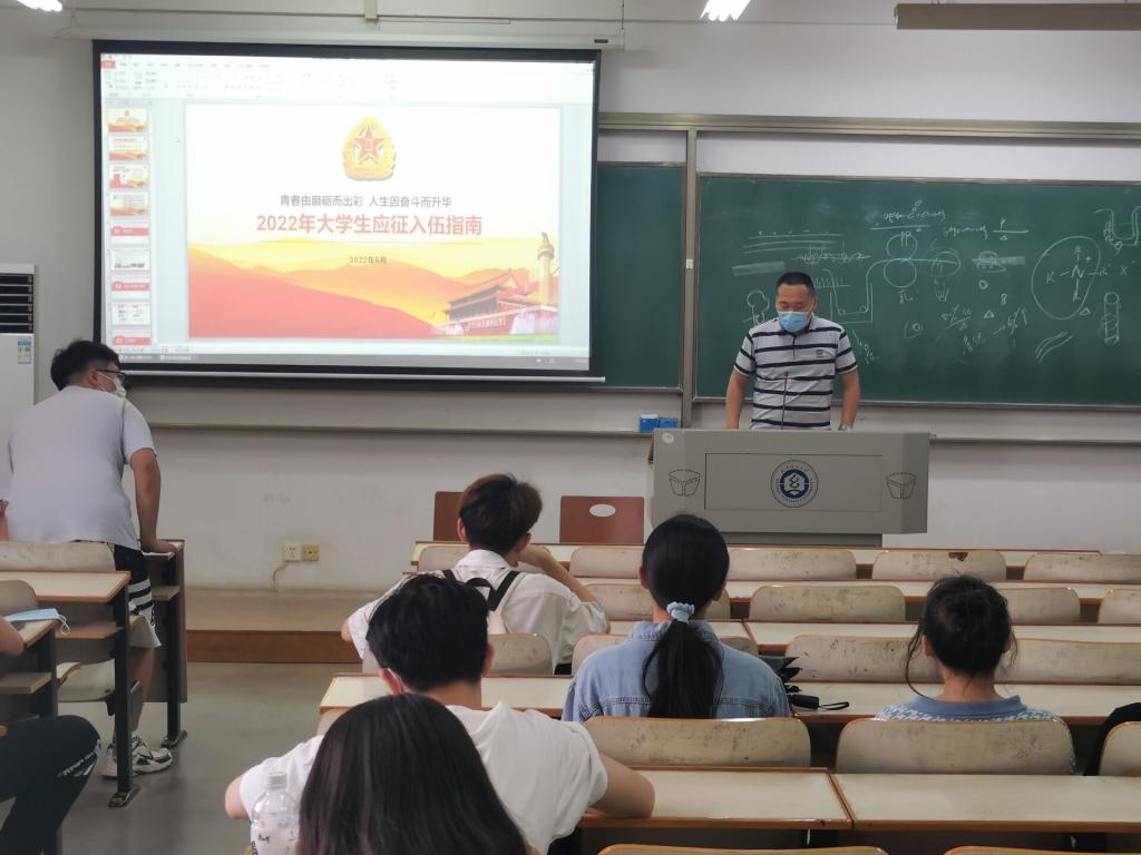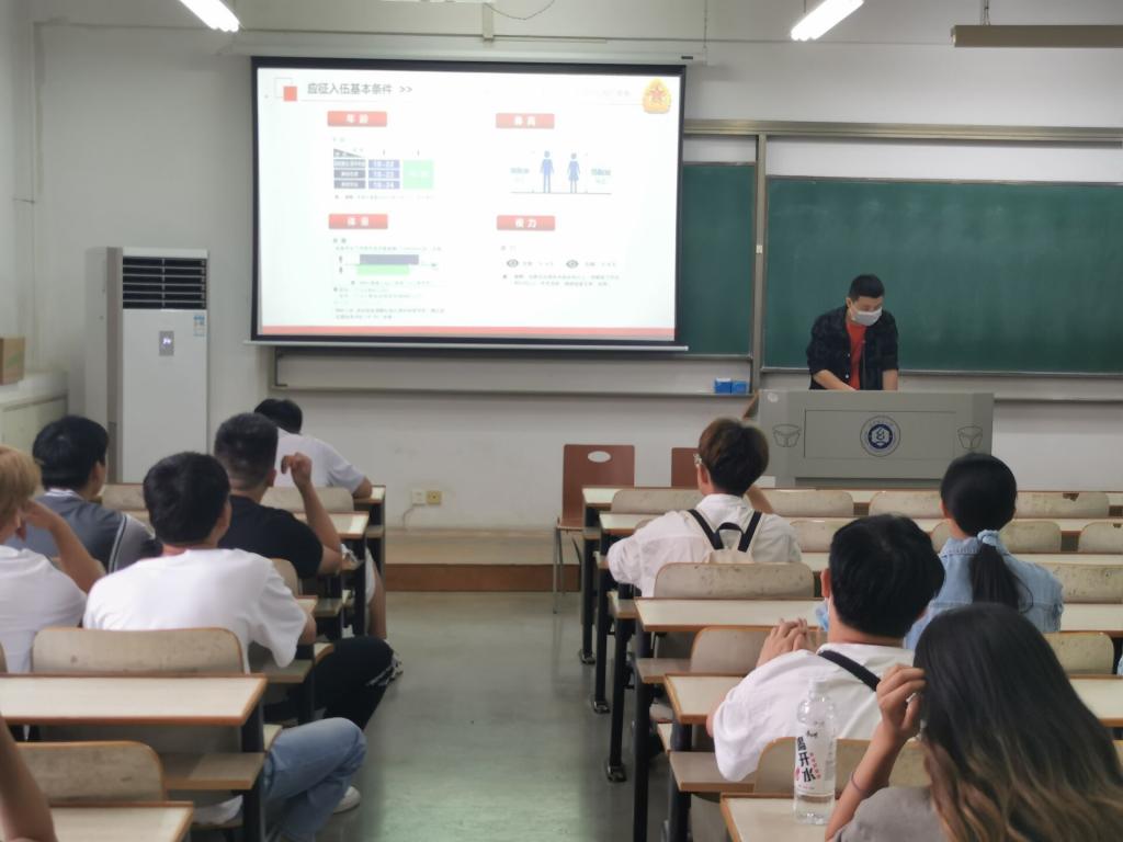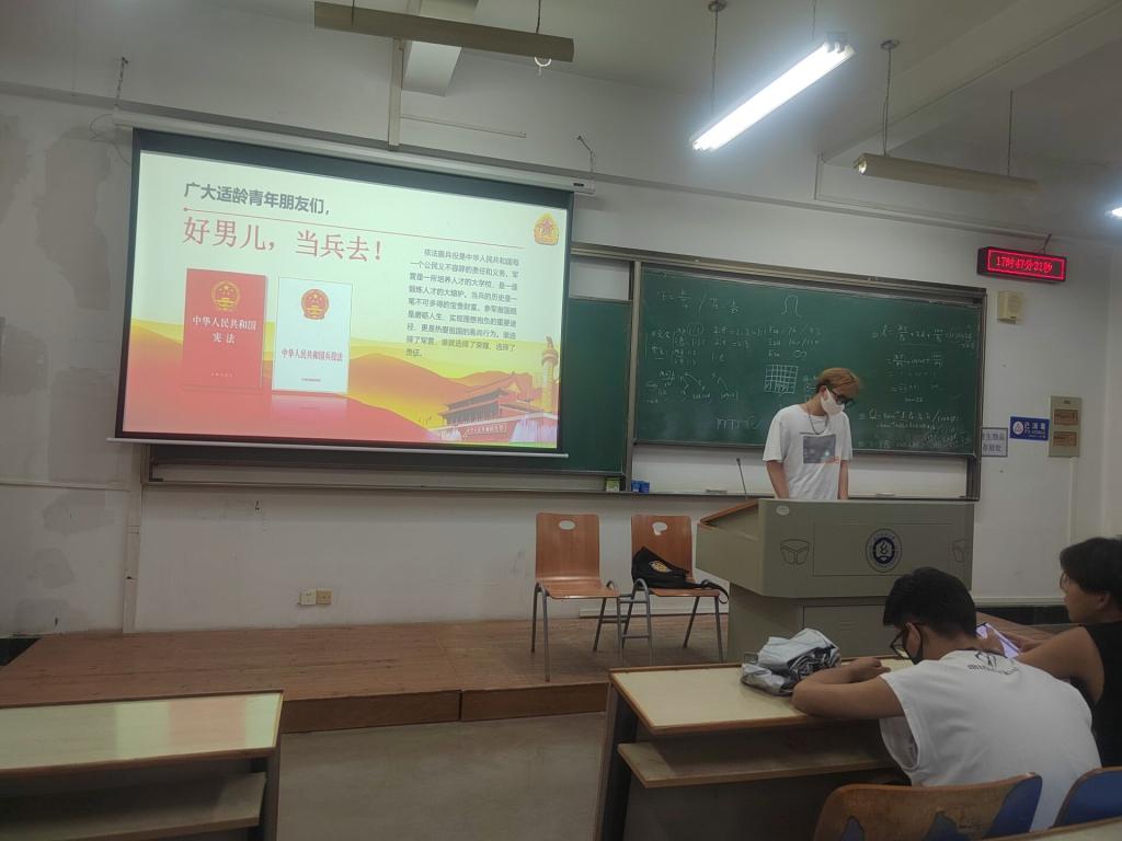各班班长召开征兵宣传主题班会,从部队简介、应征入伍基本条件、入伍流程、老员工参军特别优惠政策、军营生活等方面详细解读了2022年征兵政策,并着重提到了部队对毕业生参军的优待政策,在同学们心中埋下了参军入伍的种子。