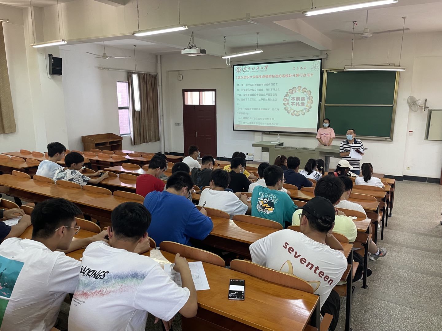 根据疫情防控要求,各班主题班会分场地开展。班会上,辅导员老师再次强调了疫情防控的重要性,并用北京高校发生疫情的案例做了警示教育。辅导员还就新学期班风学风建设提了要求,要求各班以“多读书爱学习”为荣,在各班各宿舍营造良好的学习风气。会后还对挂科的同学进行了学业预警,鼓励同学们认真总结经验教训、端正学习态度,投入更多精力到学习中来,以顺利完成学业。