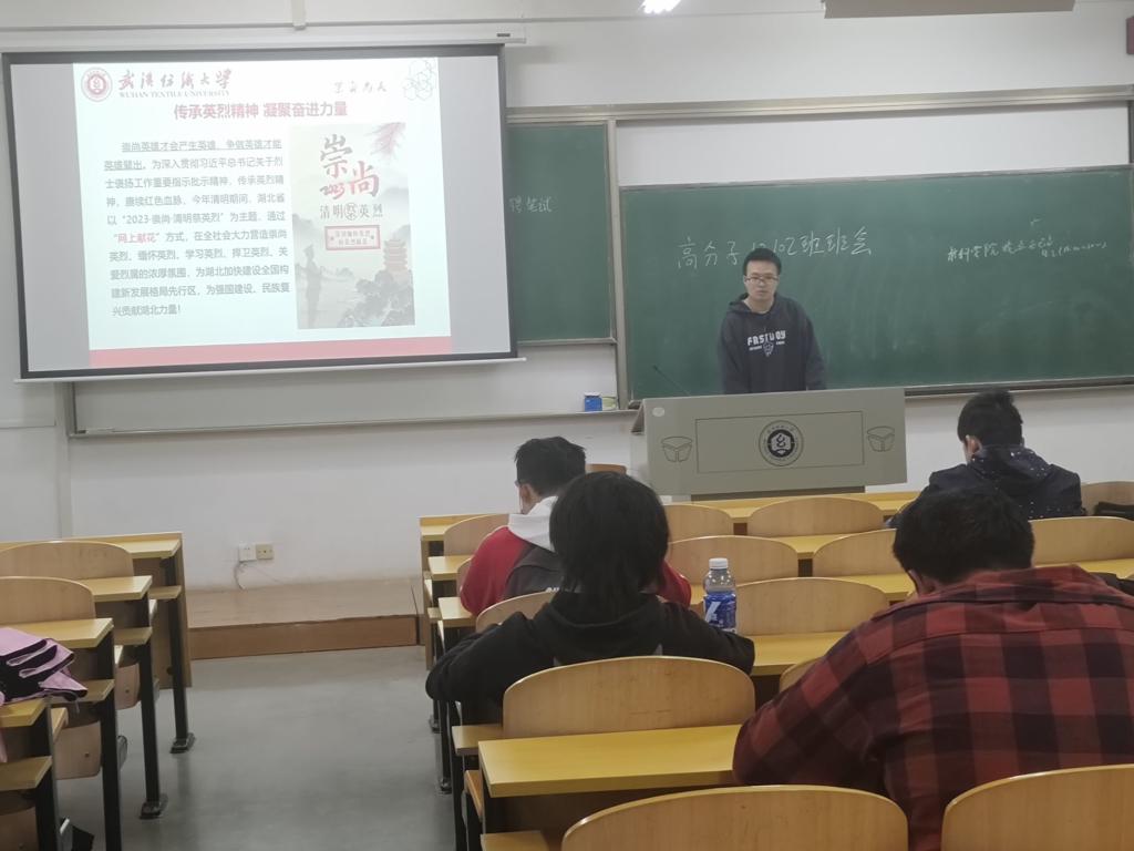 “英雄是民族最善良的坐标”“崇尚英雄才会产生英雄,争做英雄才能英雄辈出”。主题班会上,老师们讲述了陈潭秋、向警予等英烈故事,了解了网络祭扫方式和祭英烈方法。
