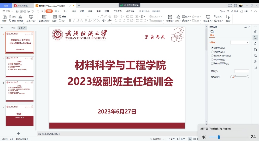为帮助副班主任尽快了解情况,做好2023级新生迎新工作,6月27日晚,材料科学召开2023级副班主任培训会,会议由复材12101班朱爽主持,并请到2022级副班主任、高分子12001班王李娜做经验分享。