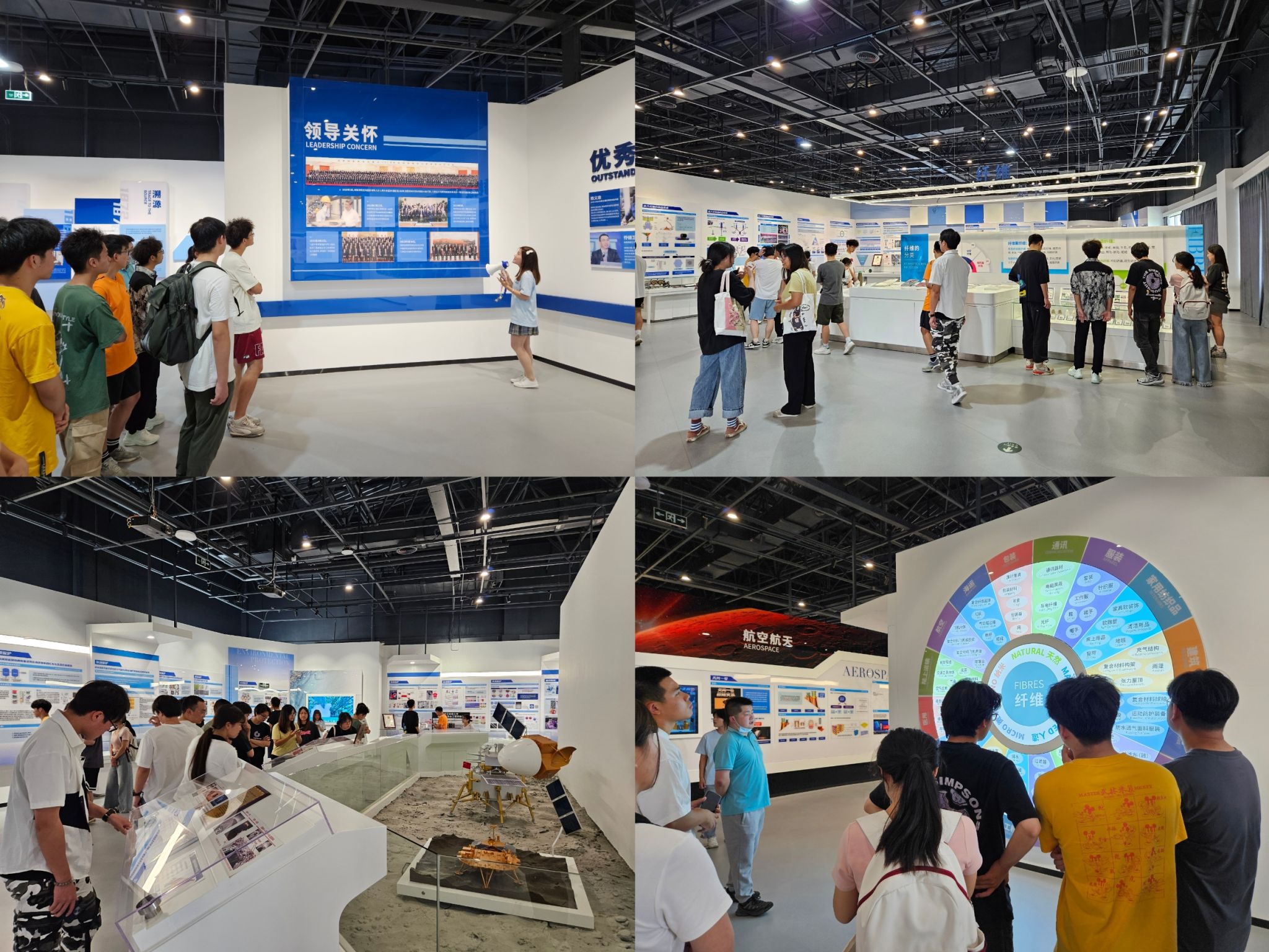 大厅内,同学们在讲解专员的引导下,参观了包括传统纺织、现代纺织、未来纺织等六个主题展厅,深刻感受到从古代到近代工业革命以来,纺织行业在人类历史进程中不可磨灭的重要作用和影响力。同时,公司六十多年来与祖国风雨同舟,参与国家纺织科技建设取得的一系列辉煌成就令同学们热血沸腾。