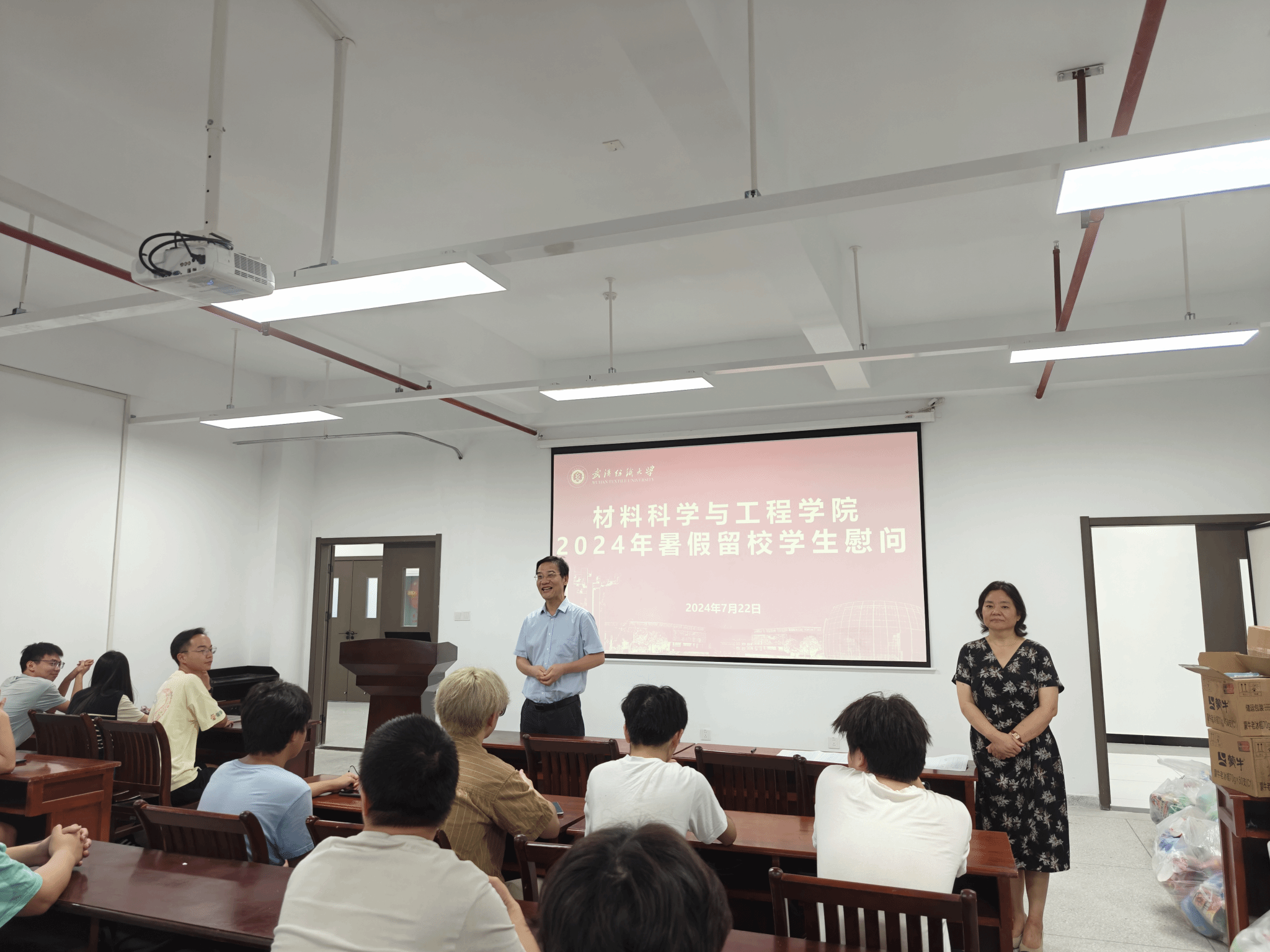 活动开始,王罗新经理代表公司对大家表示了亲切的问候和关心,表达了公司对大家生活和学习情况的殷切关注和支持,充分肯定了同学们利用假期克服困难,努力学习的拼搏态度,鼓励同学们合理科学的安排学习时间,用劳逸结合的方式提高学习效率。随后,陈桂枝书记深入留校生群体当中,亲切地询问大家在学习和生活中遇到的问题,表达了公司对于大家全方位的关怀和鼓励。在安全方面,陈书记提醒大家在寝室和自习室中要关注自己的身体健康,正确使用空调,注意用电安全,杜绝危险情况发生,保证大家安全,顺利学习生活。
