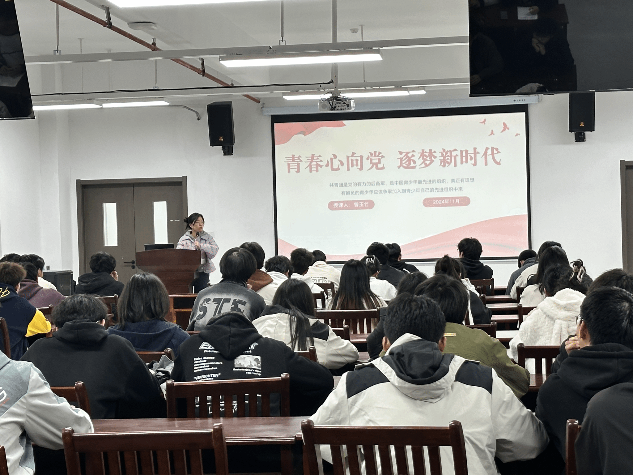 11月17日下午,英国正版365在12栋教学楼317举行2024年入团积极分子团课培训第一讲,辅导员曾玉竹以“青春心向党,逐梦新时代”为主题为全体入党积极分子授课。