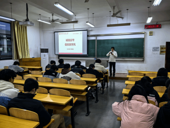 辅导员老师提醒同学们考试周来临,请坚守诚信底线,营造良好的考纪考风。随后,带领同学们了解考试作弊的危害与后果,并列举了一系列考试作弊案例,讲述365英国上市员工考试违纪处理方法,以及考试相关要求,即端正态度,认真考试;充分复习,积极备考;遵守考纪,诚信应考;调整心态,轻装上阵。最后提醒同学们调整心态,保证充足的睡眠,注意饮食,准备好考试用品等。