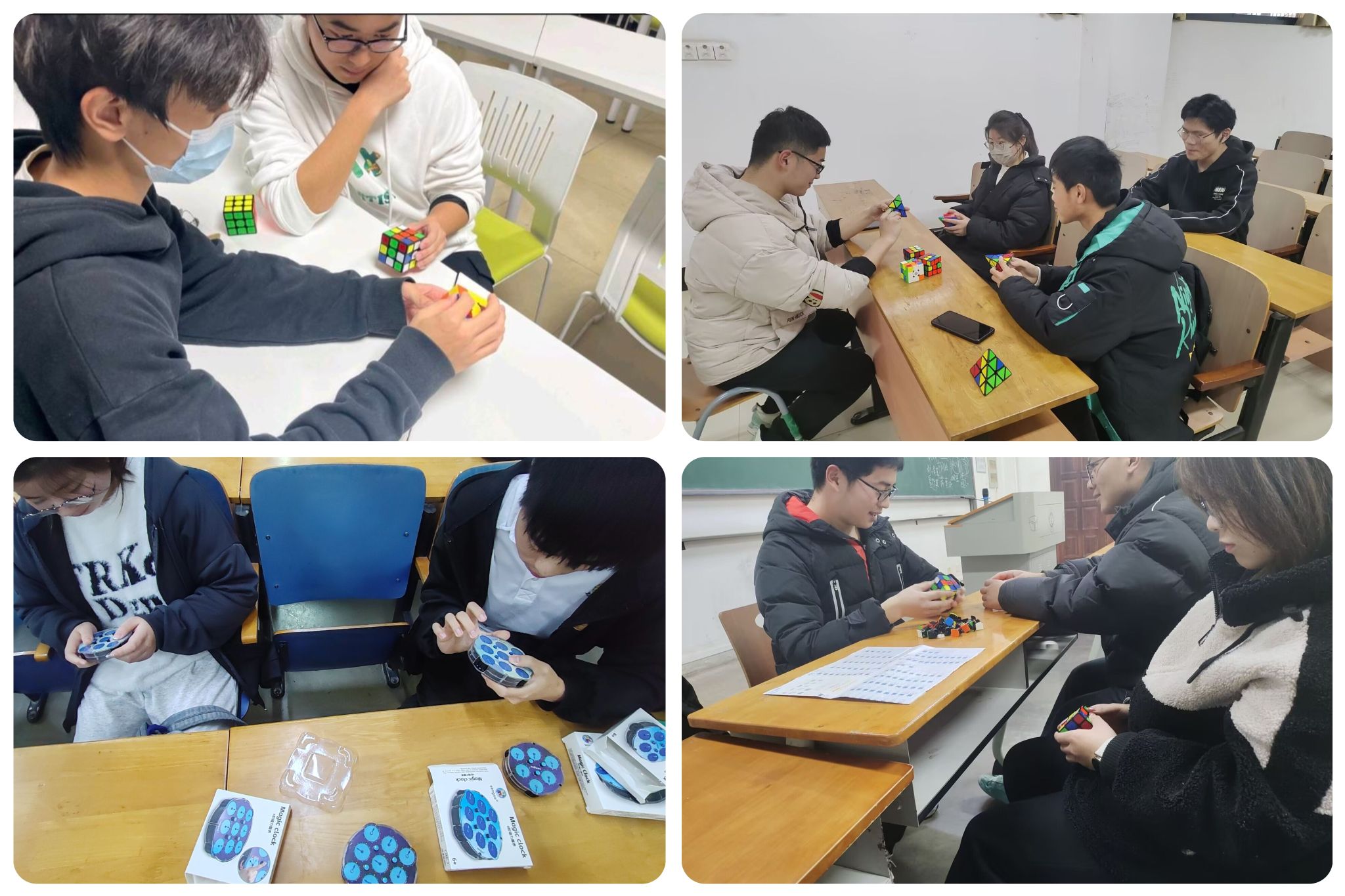 本次“魅力魔方,智趣同行”趣味体验活动不仅丰富了同学们的课余生活,也提升了大家的思维能力和团队协作精神。未来,魔方社团还将举办更多类似的活动,为校园文化生活注入更多活力,让更多的同学在魔方的世界中找到乐趣与成长。