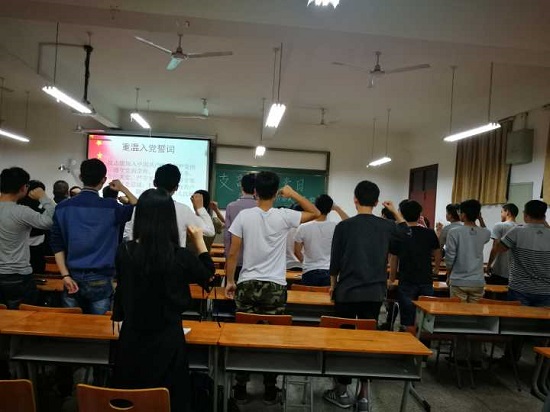 活动中,全体党员齐唱了国歌,重温了入党誓词,集体诵读了《中国共产党章程》,公布了上个月党费交纳情况、并现场交纳了当月党费。随后,支部书记带领全体成员诵读并学习党章第一章第三条中的部分内容,并联系了分党校中学习的党员八项义务,八项权利内容,强调身为一名党员,就有责任履行党员义务,为党和人民做贡献。