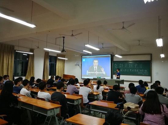 紧接着支部书记张辉带领大家学习了《关于推进“两学一做”学习教育常态化制度化意见》中的相关内容,主要从认识“两学一做”的意义、明确基本目标要求、精心安排学习内容以及引导党员做到“四个合格”这四个方面与大家共同学习,参会人员受益匪浅。随后,大家一同观看了李克强总理在两会期间的发言视频,通过这段视频,大家感受到了“两学一做”的重要性。之后主持人就最近发生的时事政治与参会成员互动,预备党员沈大宇等均踊跃发言,积极表达自己的看法。