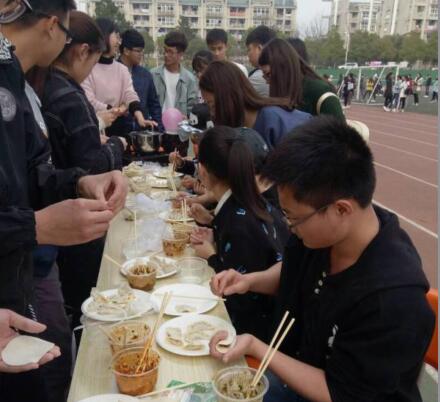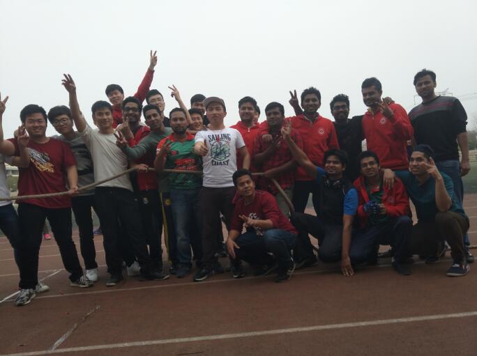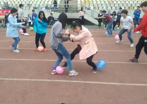 在主席台前,第一项包饺子大作战以黑暗料理的调制拉开帷幕。十名“包饺子志愿者”将调制的黑暗料理娴熟包起形态各异的饺子,空气中顿时弥漫了辣椒味,大蒜味,花椒的呛鼻味...馅料透露出的红色看起来十分诱人,至于味道,参赛选手们的表情让包饺子的同学们得意洋洋、暗自窃喜。但是为了最后的胜利,选手们还是坚持吃完了,勇于尝试,就是胜利。随后在男女混合篮球赛中,选手们游刃有余,可谓是运动健儿。50米自行车漫步骑行中,较量的是选手们自身的平衡感,耐心,耐力...充满火药味而又愉悦的拔河比赛将运动会推至高潮。拔河比赛中,各班同学摩拳擦掌、配合默契,一根绳子,一种信念。我们看到的不仅仅是高涨的热情与不停滚落的汗水,更是各班团结一致的精神风采。友谊第一,比赛第二,随后与外国友人的友谊拔河更是将气氛推向了高潮。最后一个趣味项目气球爆破结束后,活动组委会给获胜同学们颁奖,本次趣味运动会圆满地拉上了帷幕。