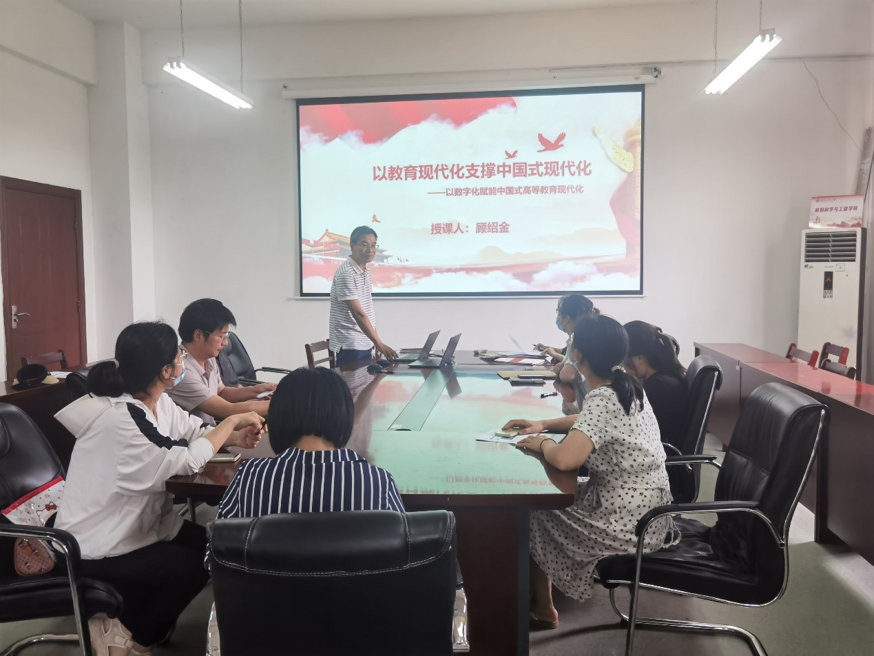 顾绍金指出,党的二十大报告对中国式现代化作出深刻论述,擘画了以中国式现代化全面推进中华民族伟大复兴的宏伟蓝图。高校要贯彻落实党的二十大精神,牢记“为党育人,为国育才”使命任务,深刻把握中国教育现代化与中国式现代化的辩证统一关系,在中国式现代化发展的“大坐标系”中找准历史方位和发展方向。